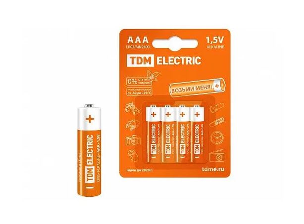 Батарейка алкалиноваяя тип LR03/ААА 1,5В (уп.4шт) TDM предназначена для питания устройств с высоким, средним и низким энергопотреблением (магнитофоны, пульты дистанционного управления, фонари, игрушки и т.п.)