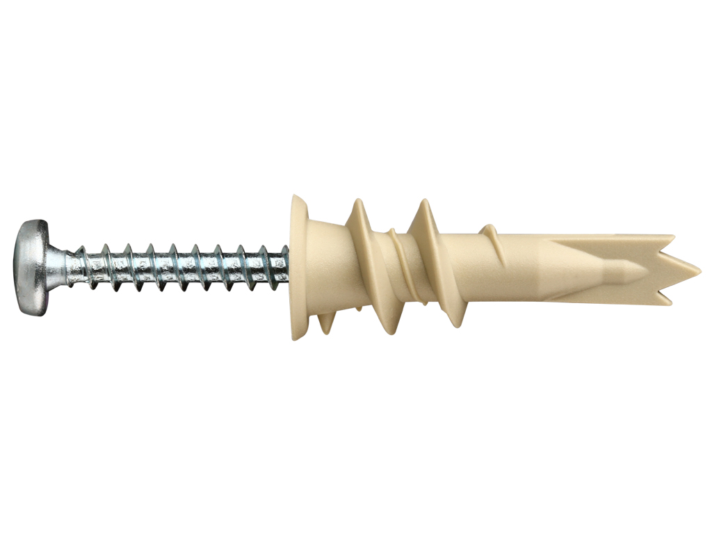 Дюбель для гипсокартона нейлоновый PBA подходит для крепления в гипсокартоне, в пенобетоне и газобетоне. Пластиковые дюбели из полиамида с добавлением стекловолокна поставляются с оцинкованными шурупами диаметром 4,5 мм, длиной 35 мм для использования в сухих помещениях.
