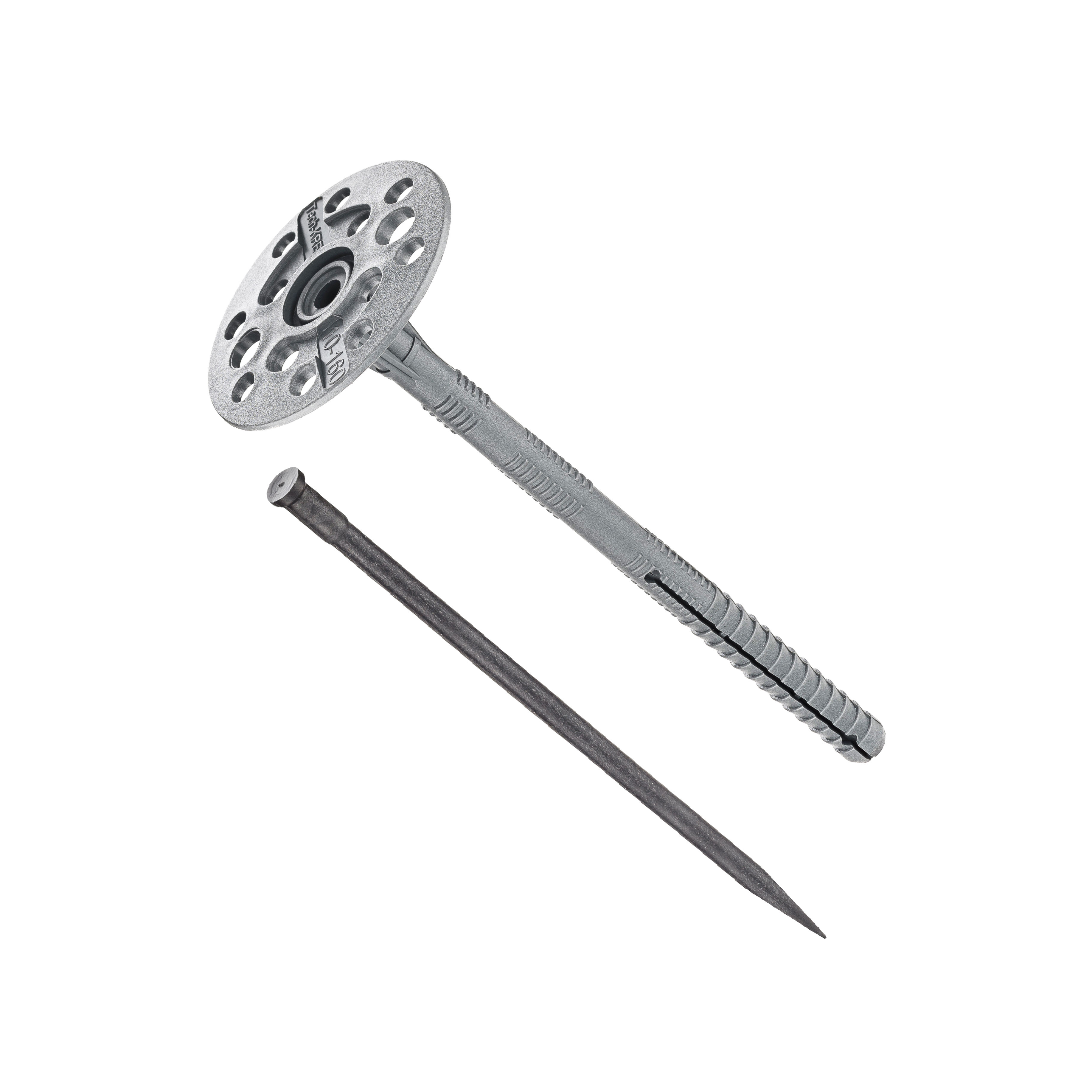 Дюбель для теплоизоляции 10х160мм с пластиковым гвоздем применяется для крепления легких теплоизоляционных материалов максимальной толщиной 100мм к фасадам зданий.