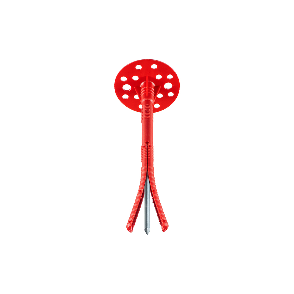 - Металлический оцинкованный гвоздь с термоголовкой, вбивается в распорный элемент, чтобы обеспечить плотную фиксацию. Пластиковый колпачок защищает от коррозии и предотвращает потерю тепла.