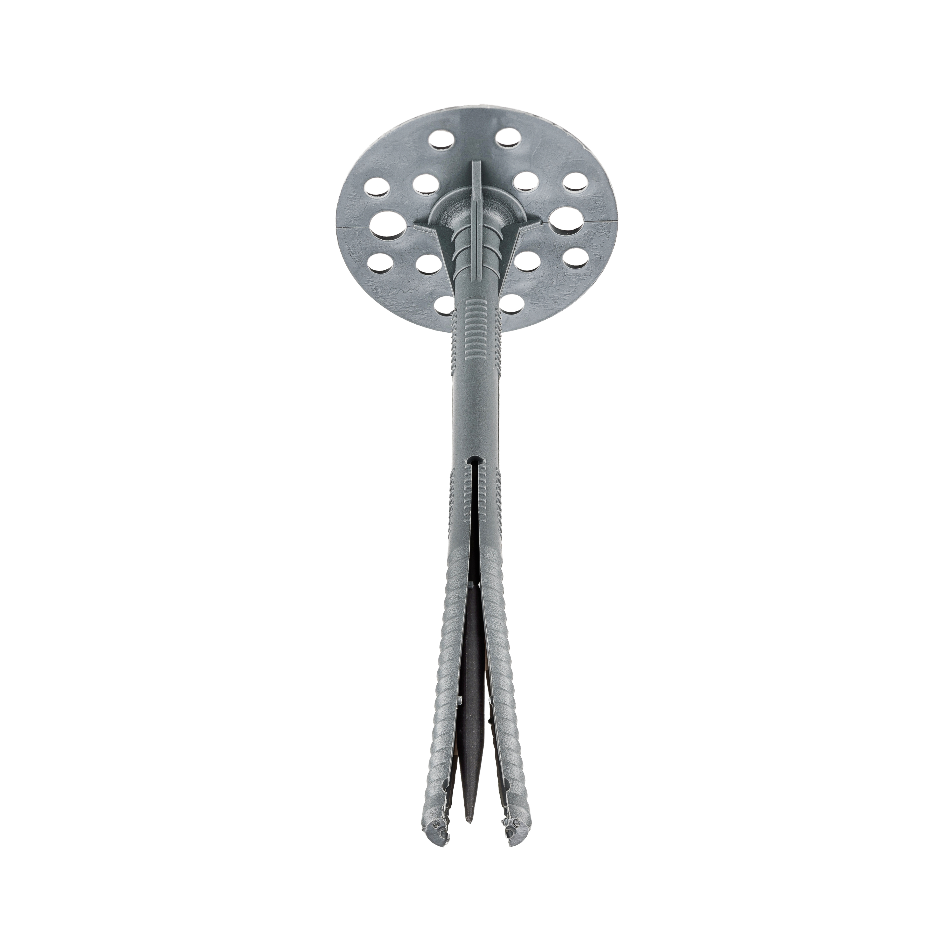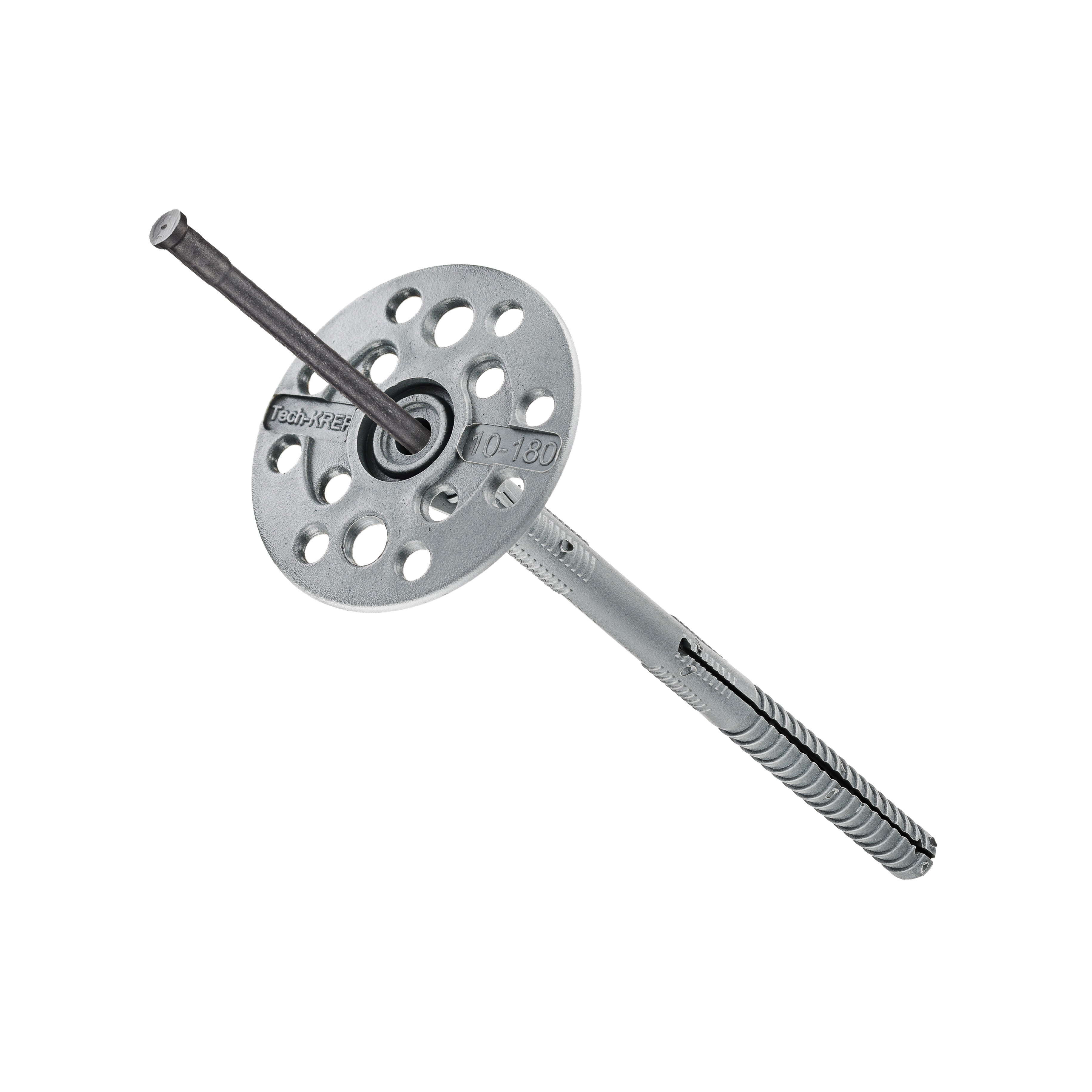 Дюбель для теплоизоляции 10х180мм с пластиковым гвоздем применяется для крепления легких теплоизоляционных материалов максимальной толщиной 130мм к фасадам зданий.