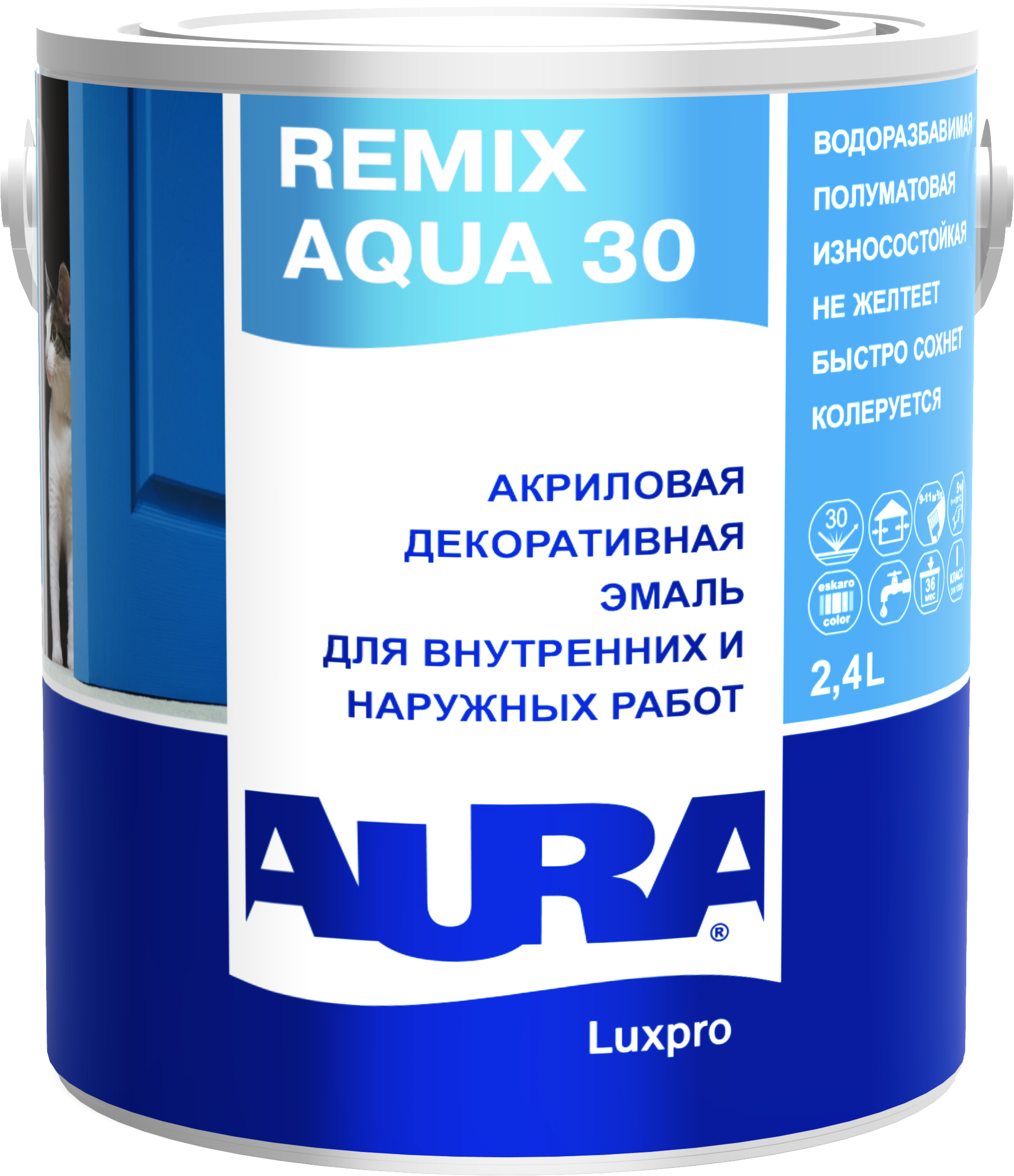 Эмаль акриловая Aura Luxpro Remix Aqua 30 база TR бесцветная 2,4л