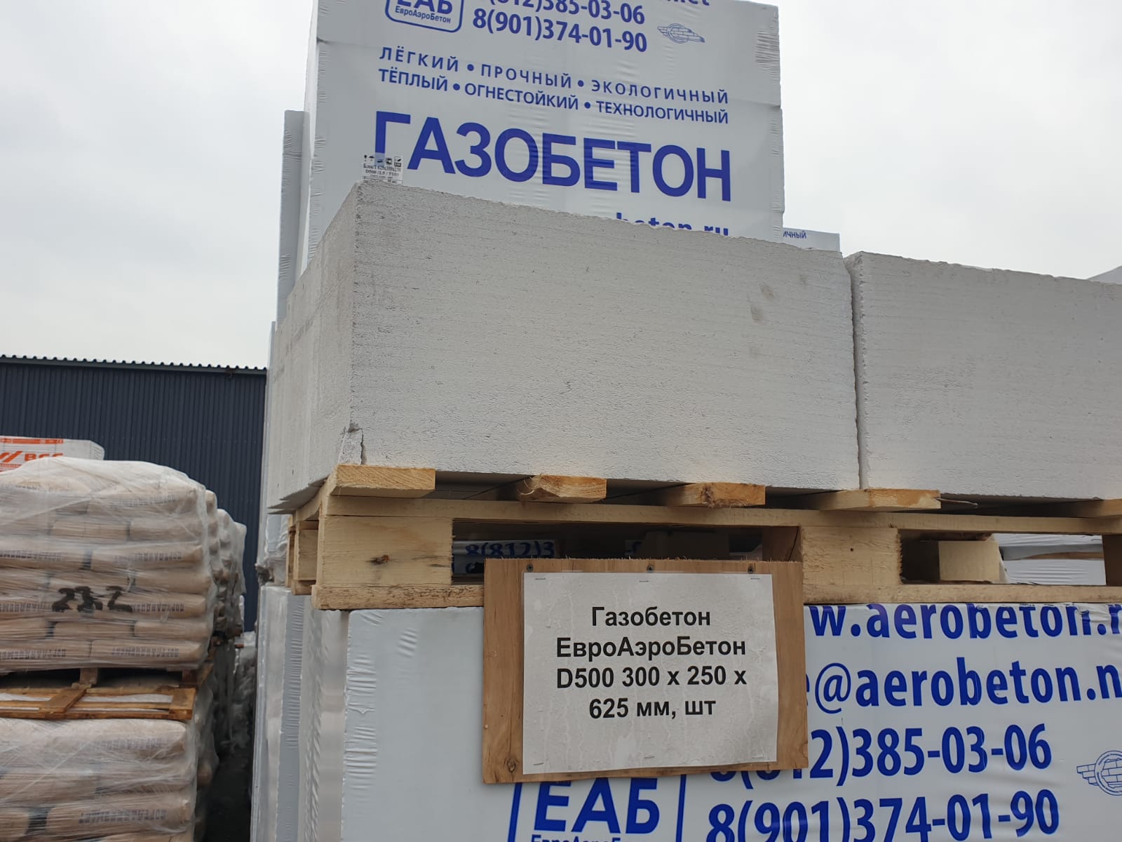Газобетон ЕвроАэроБетон D500 300 х 250 х 625 мм