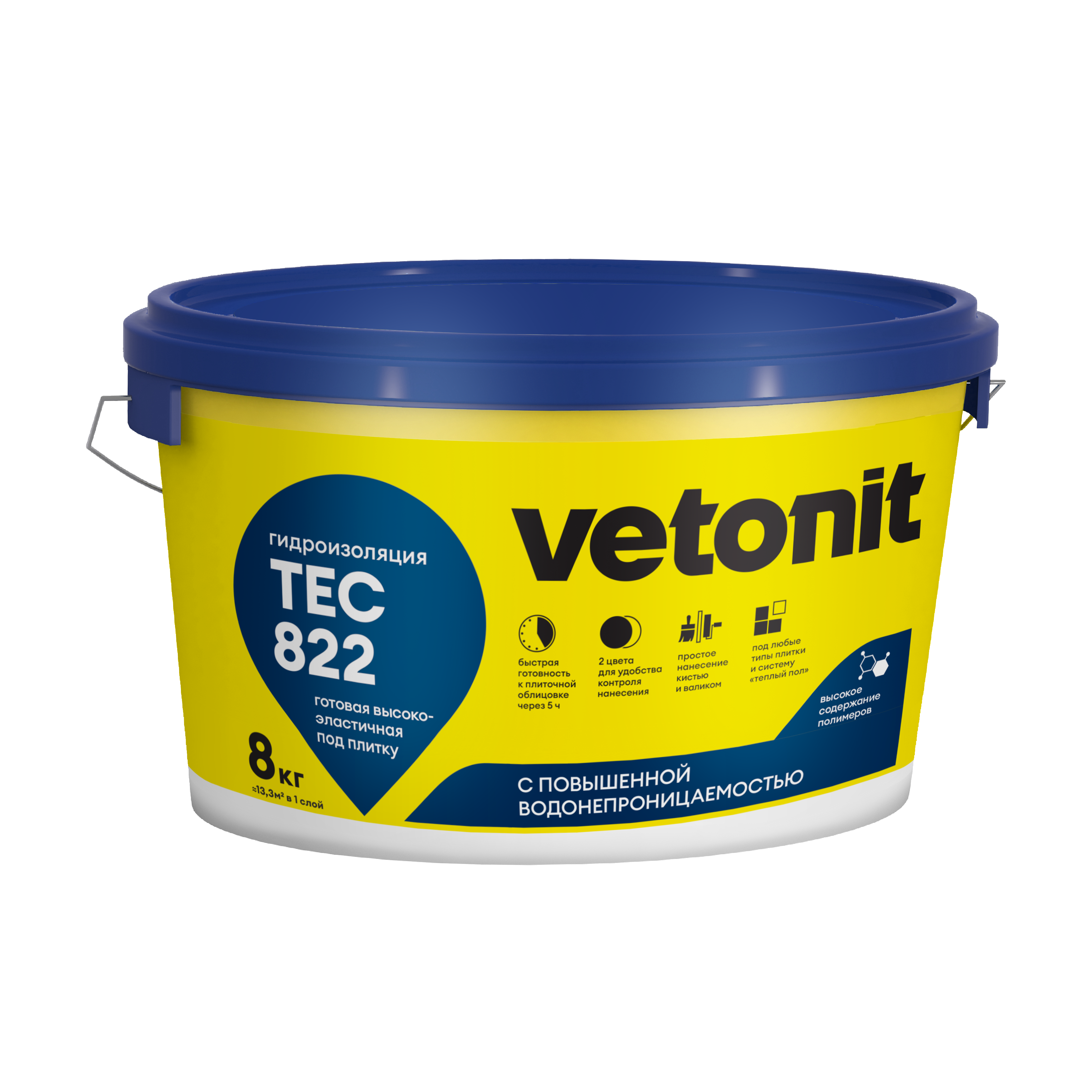 Гидроизоляция Ветонит тек 822 серая -Высокоэластичная бесшовная полимерная гидроизоляция под плитку для помещений с повышенной влажностью — ванных комнат, душевых, санузлов, кухонь, балконов и лоджий