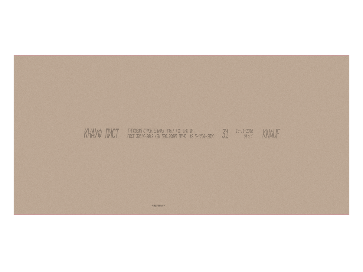 КНАУФ-листы огнестойкие выпускаются в соответствии с ГОСТ 32614-2012 (EN 520:2009) и представляют из себя прямоугольный материал, состоящий из двух слоев специального картона с прослойкой из гипсового теста с армирующими добавками, боковые кромки зафальцовываются краями картона (лицевого слоя). Сердечник формируется с применением гипсового вяжущего марки Г4 по ГОСТ 125-79.
