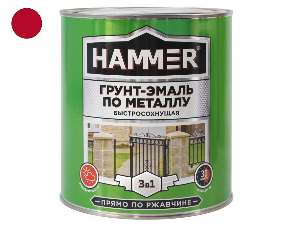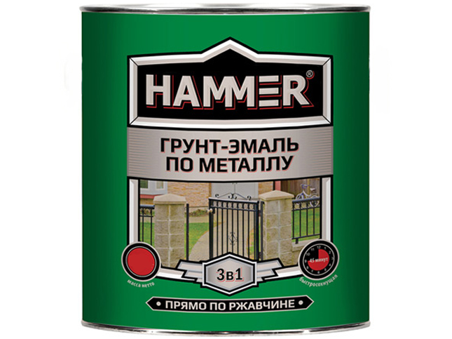 Грунт-Эмаль по металлу Хаммер, предназначена для защиты и создания декоративного покрытия на стальных и чугунных поверхностях с остатками оскалины и плотно державшейся ржавчины, подвергающихся воздействию атмосферы, солей и других химических реагентов.