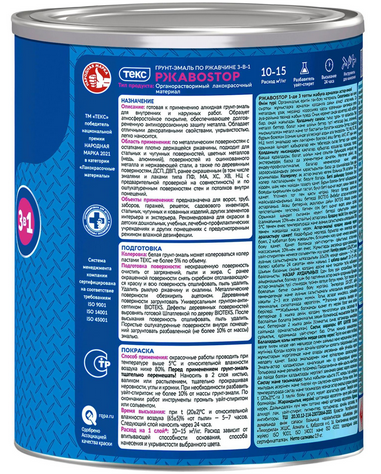 Предназначена для окраски металлических поверхностей с остатками ржавчины внутри и снаружи помещений (гаражи, ограды, решетки), может использоваться для окраски деревянных поверхностей. Обеспечивает высокие защитные свойства, как на ржавой поверхности, так и на чистом металле. Может наноситься на остатки старых ЛКМ.