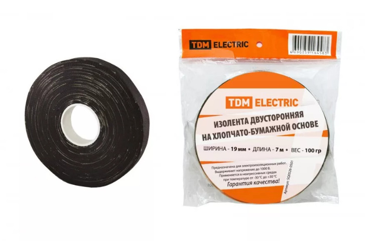 Изолента ХБ двусторонняя 19мм х 7м (100г) предназначена для электроизоляции проводов и мест их соединения.