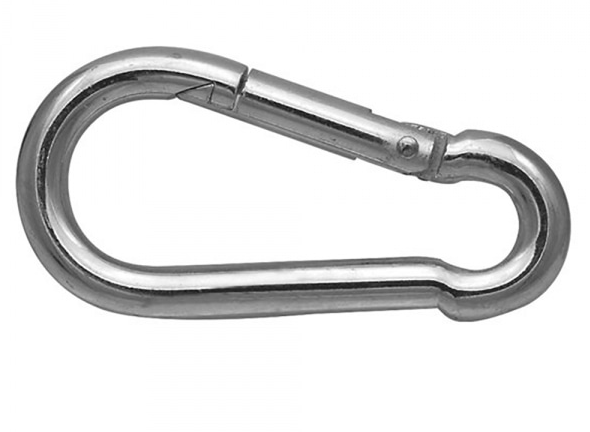 Стальной оцинкованный карабин применяется для быстрого крепления тросов, цепей, веревок и канатов.