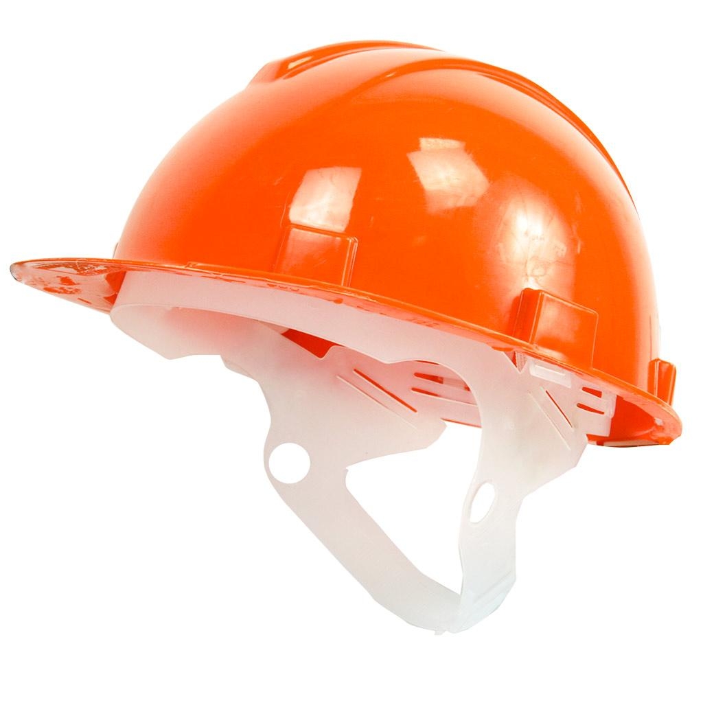 Каска строительная оранжевая - изготовлена из полиэтилена низкого давления, оборудована системой вентиляции и карманами для крепления наушников и защитного экрана. Предназначена для защиты головы от механических воздействий, электрического тока (электроизоляция 440 В) и воды. Температурный режим: от –40°С до +50°С.