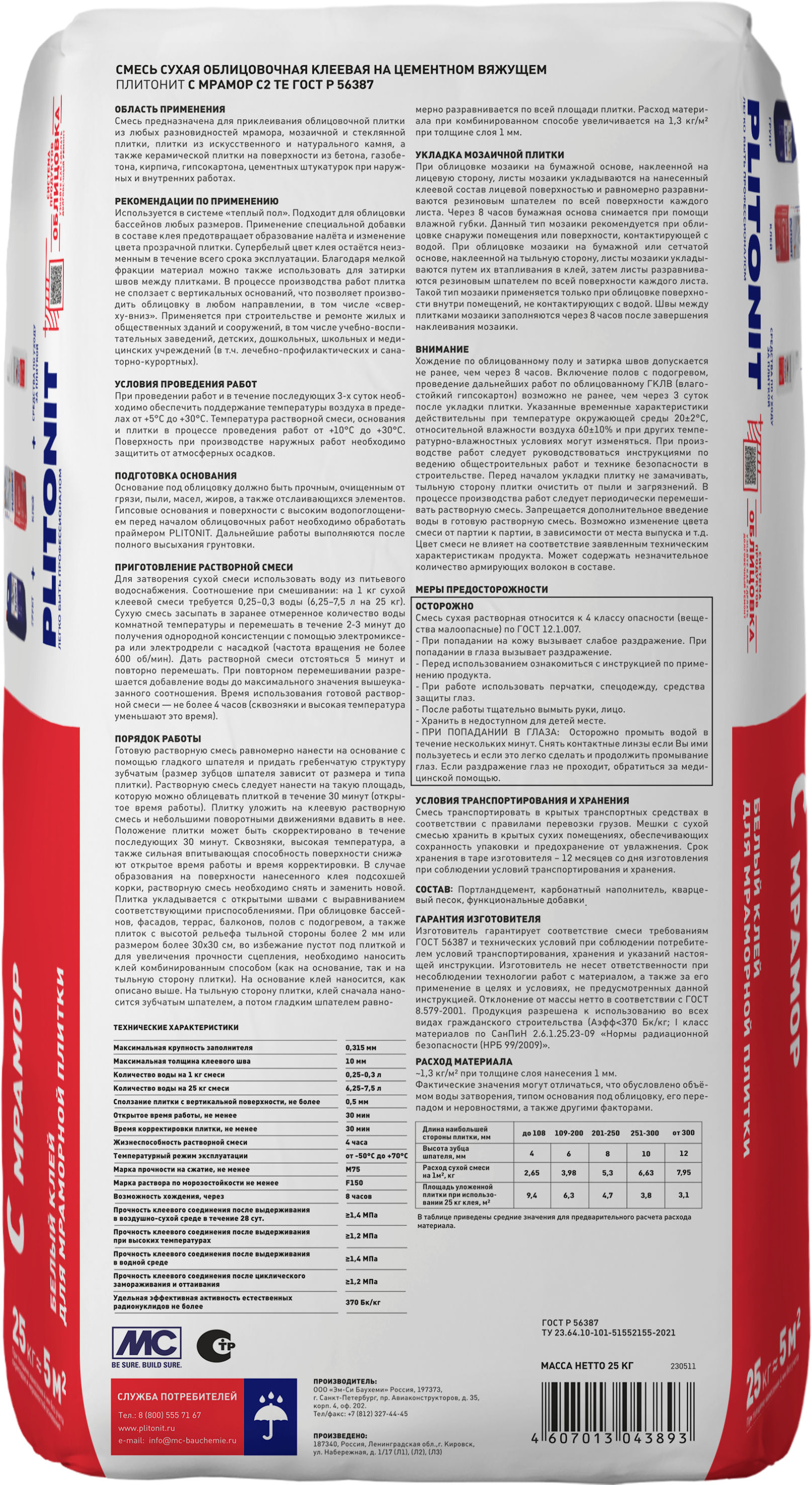 | Класс клея по ГОСТУ: | С2 TE |