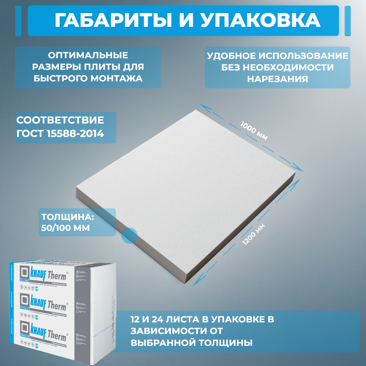 KNAUF Therm® Пенопласт Facade / Фасад PRO 1000?1200 мм — профессиональные влагостойкие плиты из пенополистирола для наружного утепления фасадов “мокрым” способом (тонкий штукатурный слой по стеклосетке). Материал применяется как средний слой в фасадных системах и рассчитан на стабильную работу в условиях ветра и влаги.