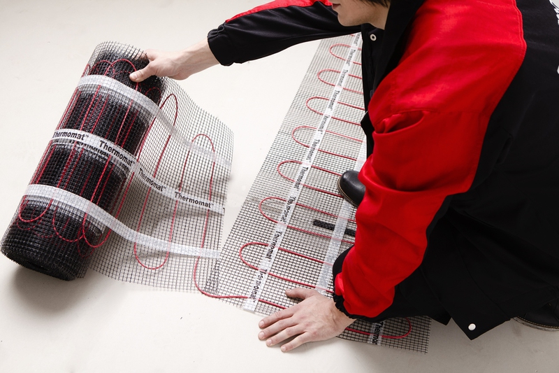 Thermomat – это тонкий двужильный нагревательный кабель толщиной всего 2,8 мм, закрепленный с определенным шагом на сетке шириной 50 см. Его толщина позволяет устанавливать его в слой плиточного клея без заливки стяжки, поэтому высота пола практически не увеличивается.Thermomat незаменим при реконструкции старого пола – его можно укладывать прямо на старый кафель, а также в помещениях с низкими потолками. Основа Thermomat представляет собой экологически чистую сетку из стекловолокна, дополнительно армирующую конструкцию пола.