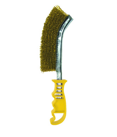 Предназначена для обработки металлических поверхностей (снятие старой краски и ржавчины), удобна при работе в узких местах. Имеет металлическую основу и один ряд проволоки, оснащена эргономичной пластмассовой рукояткой.