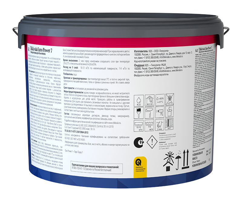 Водоразбавляемая латексная краска EURO POWER 7 для окраски стен и потолков в помещениях с нормальной и повышенной влажностью, относится к линейке Евро.