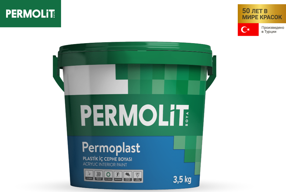 За счёт плотности, краска PERMOPLAST обладает высокой укрывистостью и образует идеально гладкую латексную поверхность без шагрени.
