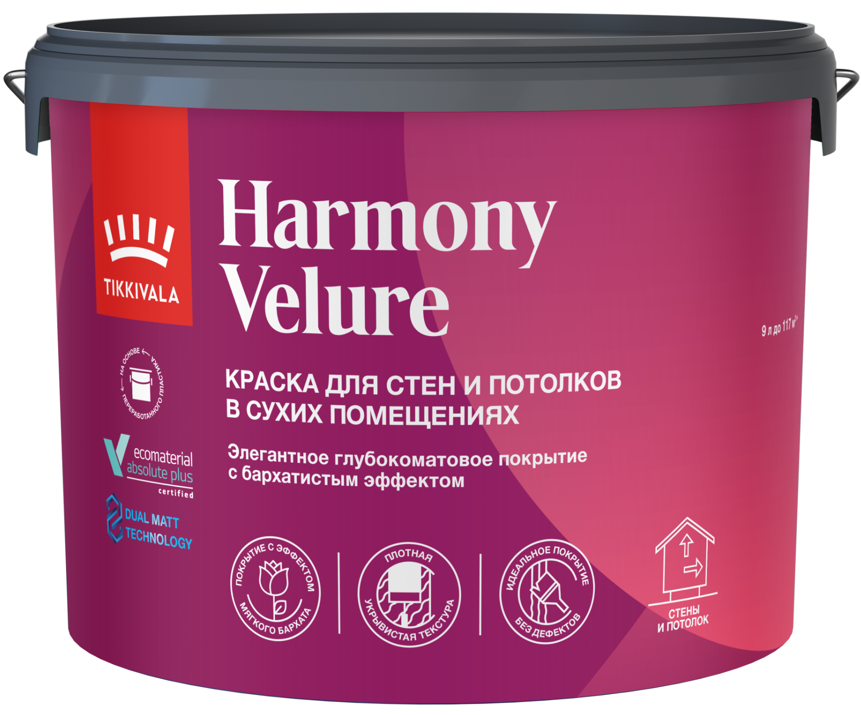 Совершенно матовая краска с бархатным блеском. Применяется на новые и окрашенные ранее бетонные, оштукатуренные, зашпатлеванные, кирпичные, картонные, деревянные поверхности, гипсовые, ДВ и ДС плиты в сухих помещениях, например, стены и потолки в гостиных, спальных и детских комнатах, в т.ч. в детских дошкольных, учебных, лечебно-профилактических учреждениях и других помещениях с предусмотренным режимом влажной дезинфекции. Не подходит для окраски дверей и мебели.