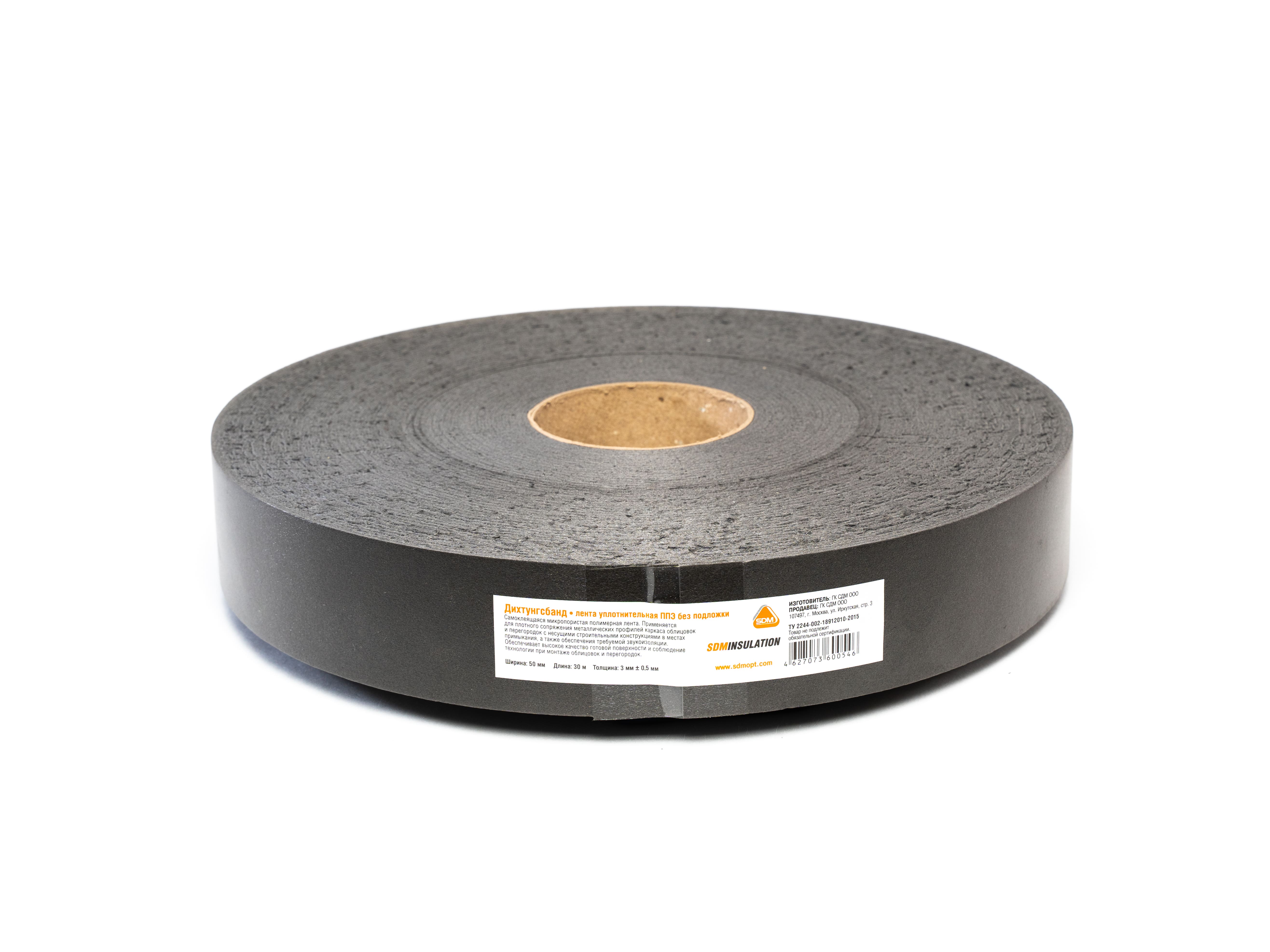 Лента уплотнительная самоклеящаяся Дихтунгсбанд 9,5см х 30м – лента, изготовленная из вспененного полиуретана с клеевой основой для монтажа, упакована в форме рулона.