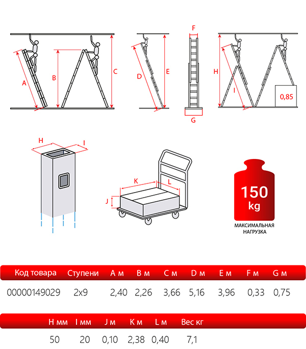 Лестница 2-хсекционная – многофункциональная лестница, которая может использоваться в трех вариантах: как приставная, раздвижная и двухсторонняя стремянка.