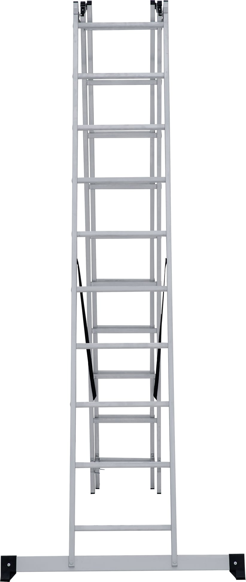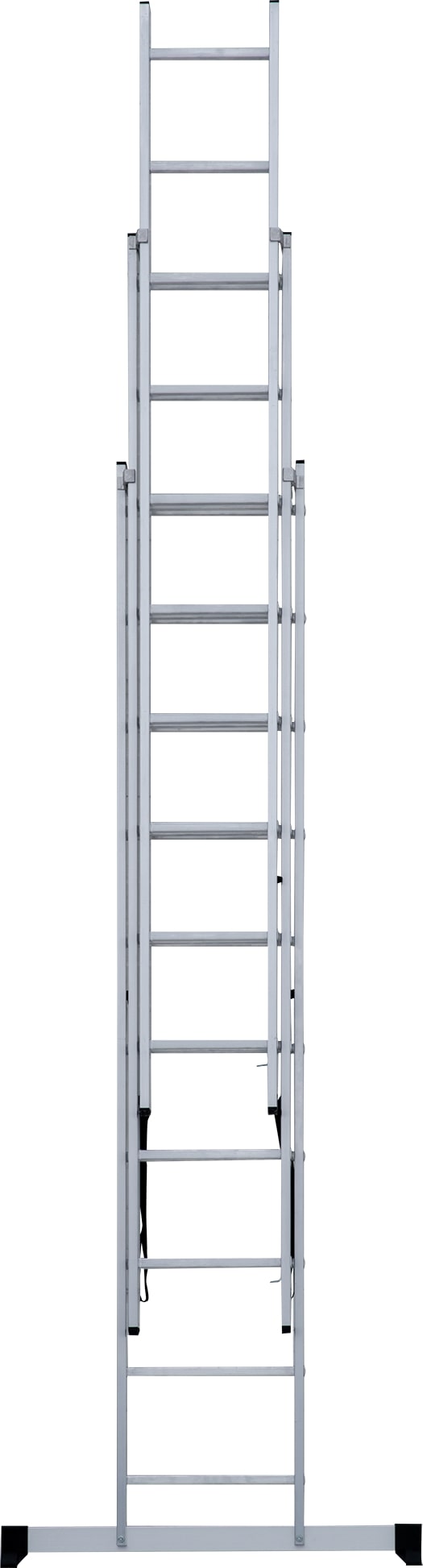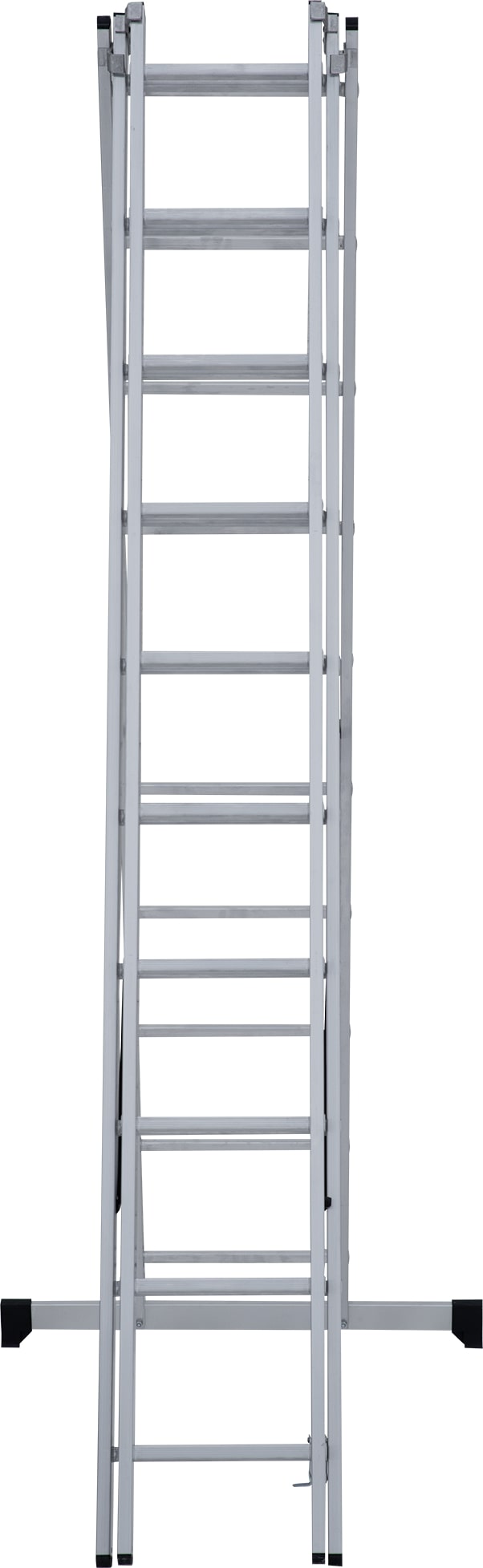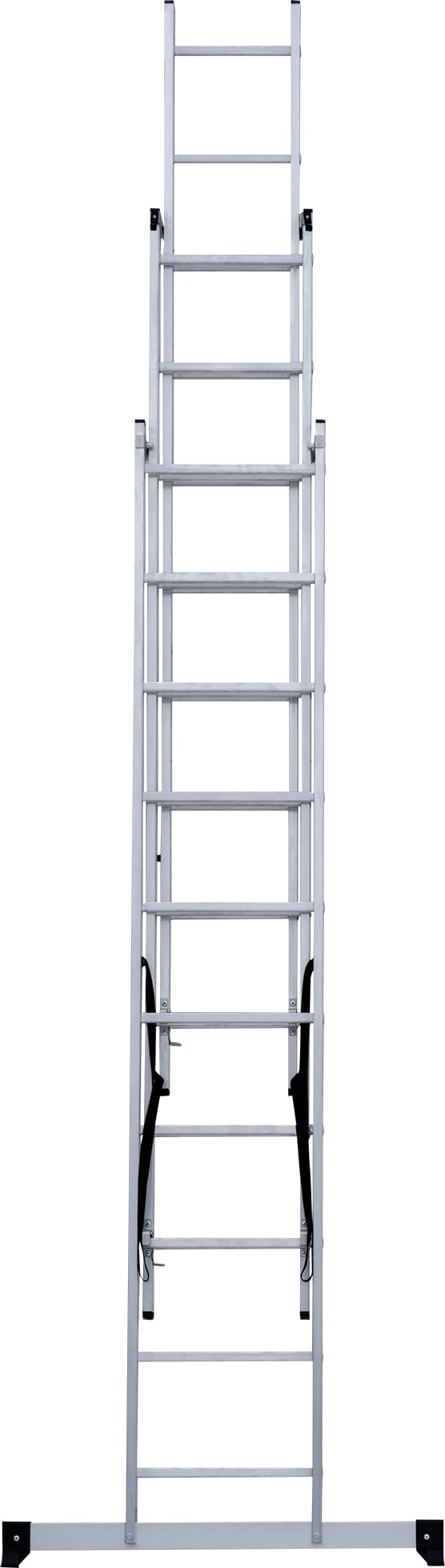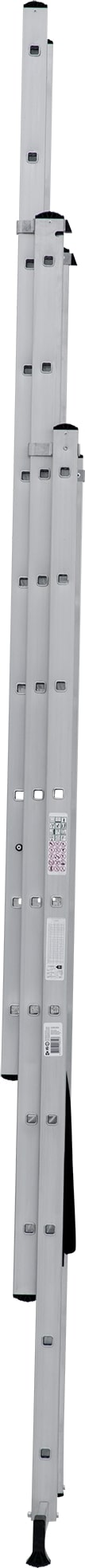 Лестница трехсекционная – это универсальная лестница, которая может использоваться в разных режимах: как приставная, раздвижная, двухсторонняя стремянка, стремянка с выдвижной секцией и лестничный марш.