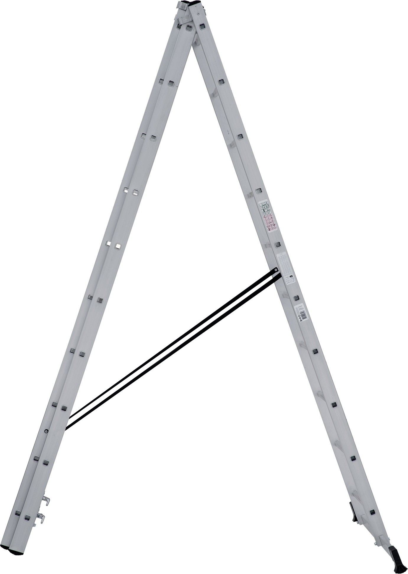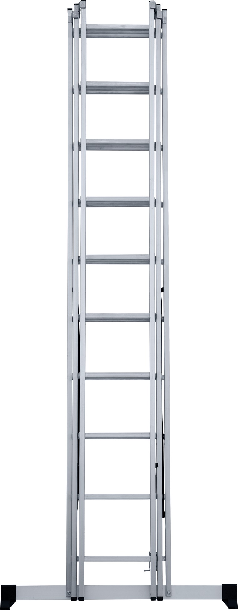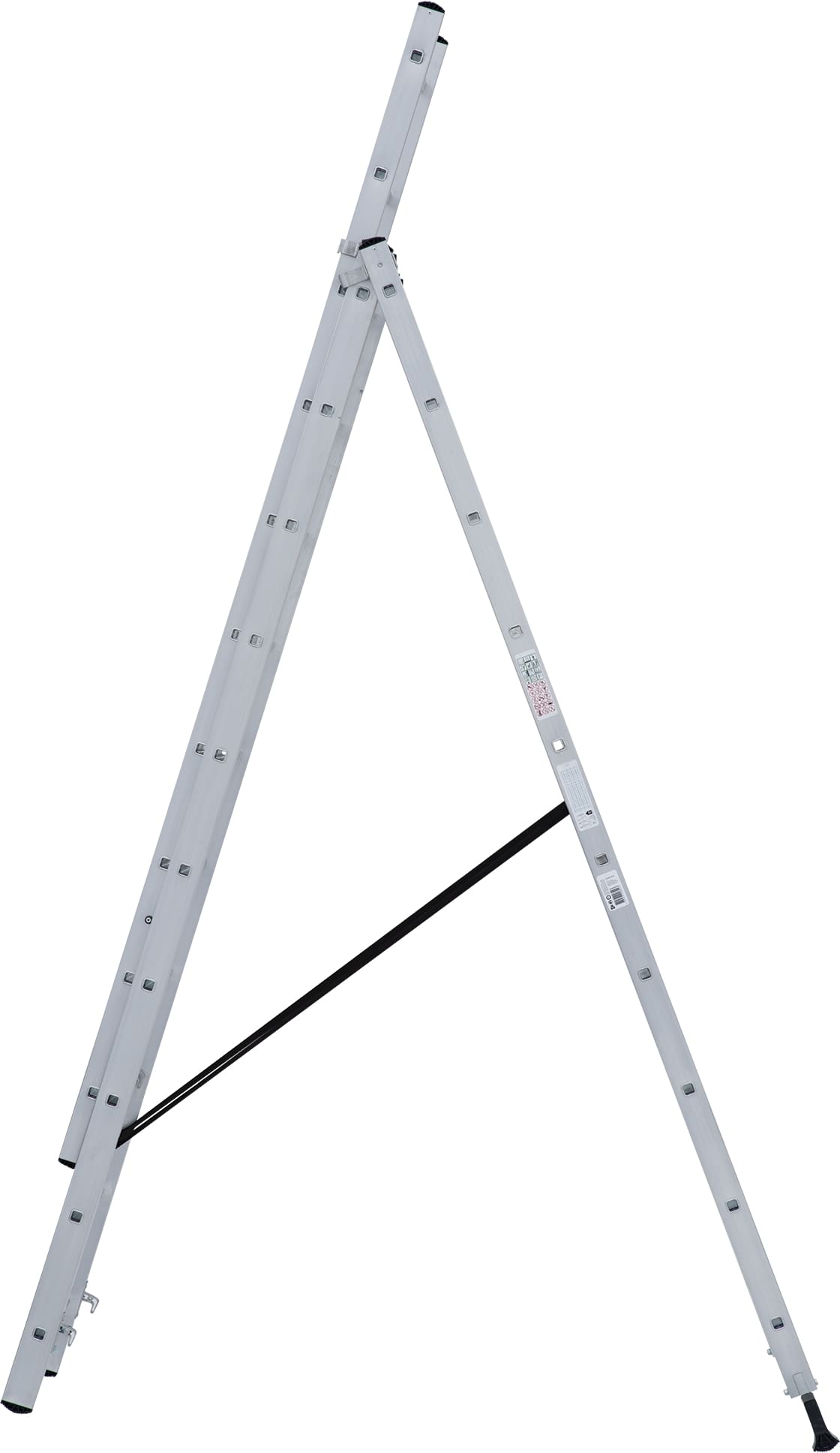 Лестница трехсекционная – это универсальная лестница, которая может использоваться в разных режимах: как приставная, раздвижная, двухсторонняя стремянка, стремянка с выдвижной секцией и лестничный марш.