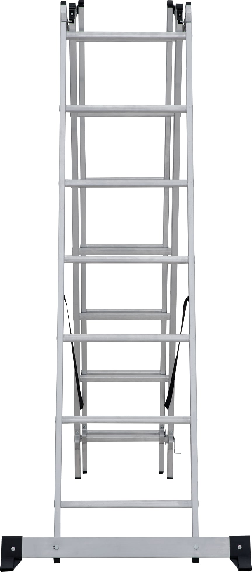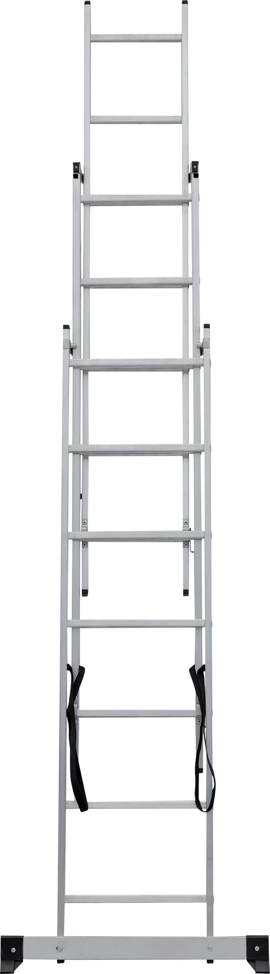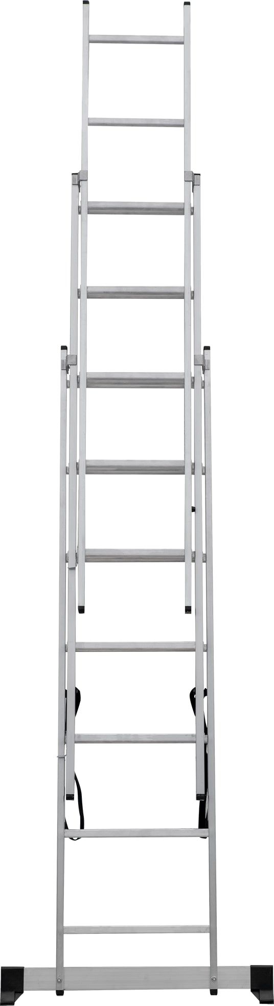 Лестница трехсекционная – это универсальная лестница, которая может использоваться в разных режимах: как приставная, раздвижная, двухсторонняя стремянка, стремянка с выдвижной секцией и лестничный марш.