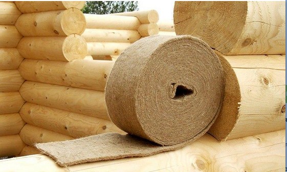 Ширина используемого полотна может быть на 20 мм. меньше ширины бруса. Если внутренняя сторона брусчатого или бревенчатого дома не обшивается, то сложенный край полотна может быть уложен вровень или утоплен на 5 мм. внутрь дома. В процессе усадки под давлением венцов полотно уплотняется.