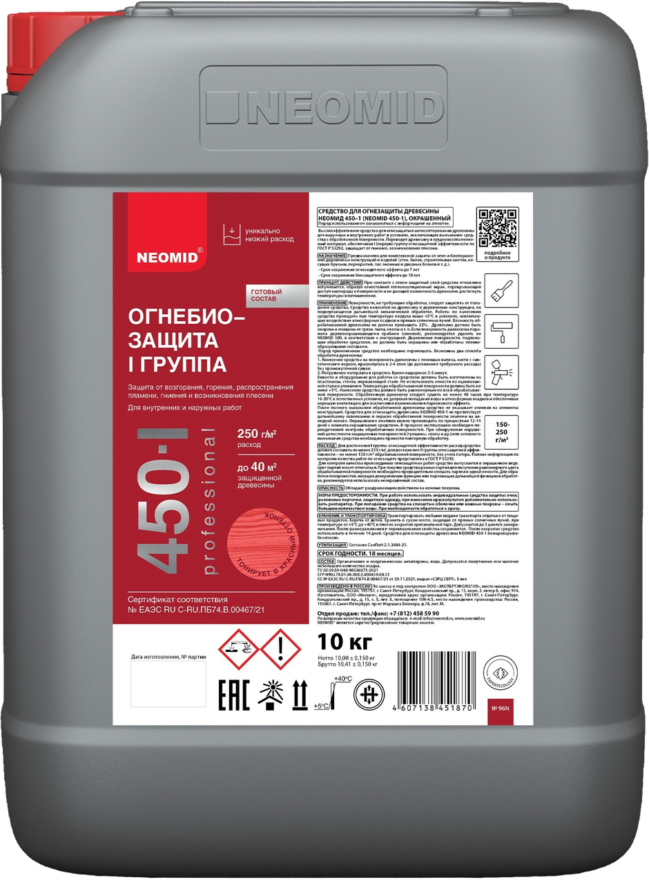 Огнебиозащита для дерева Neomid 450-1 I группа красная 10кг
