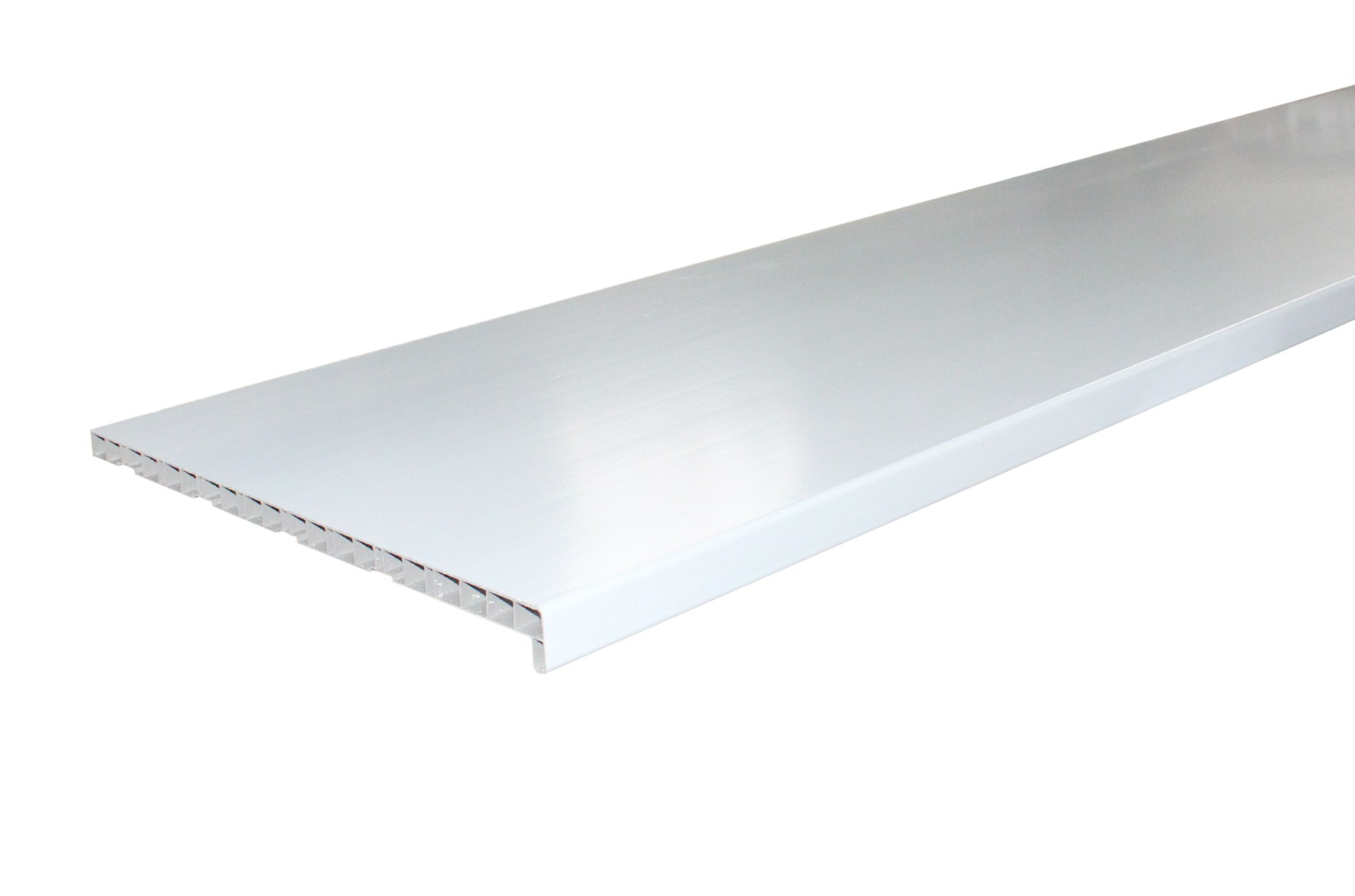 Конструкция подоконника представляет собой полую пластиковую доску с вертикальными рёбрами жёсткости.