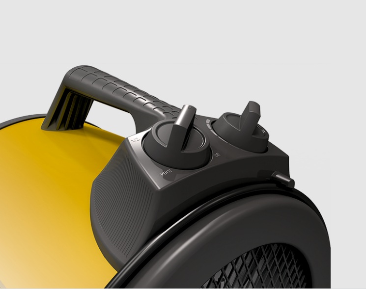 Нагревательный элемент (ТЭН) выполнен из нержавеющей стали и подходит для работы в пылезагрязненных помещениях. Пушка оснащена двумя ступенями мощности нагрева. Регулировка температуры производится с помощью роторного переключателя.