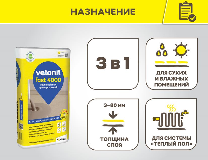 Ровнитель Ветонит фаст 4000 – универсальный быстротвердеющий ровнитель для пола
