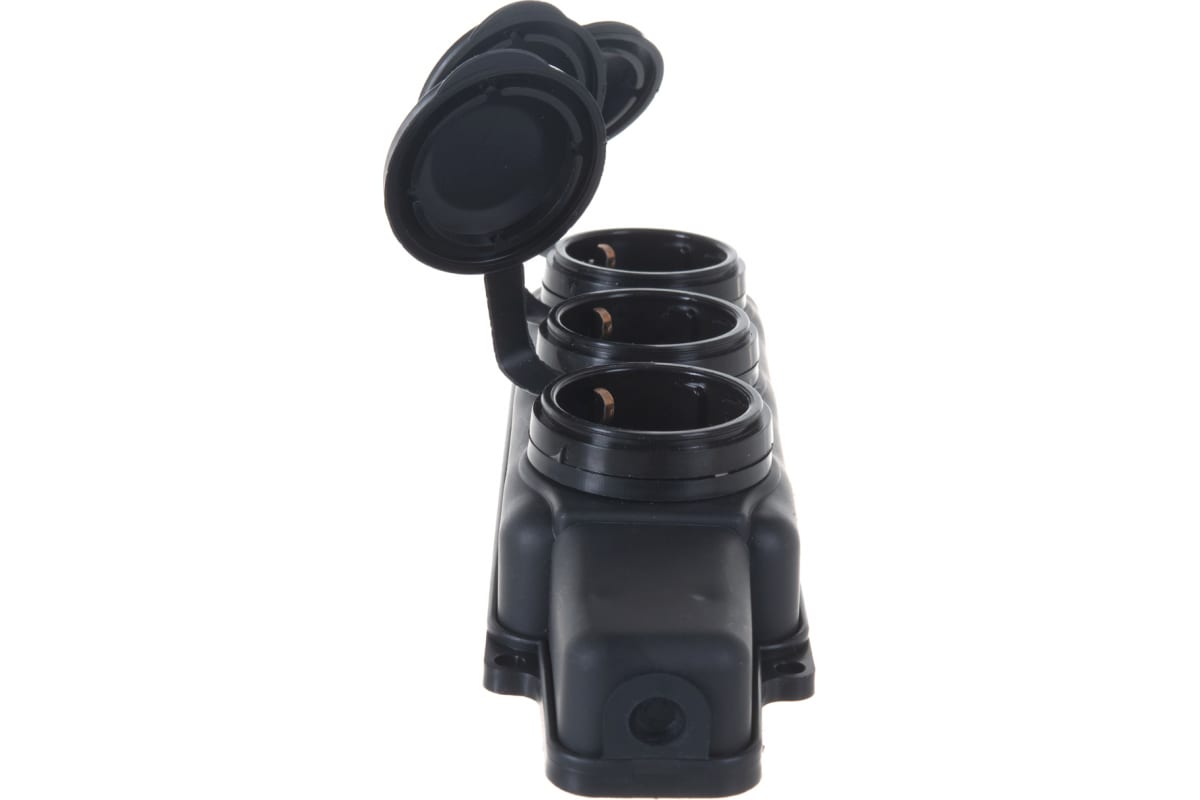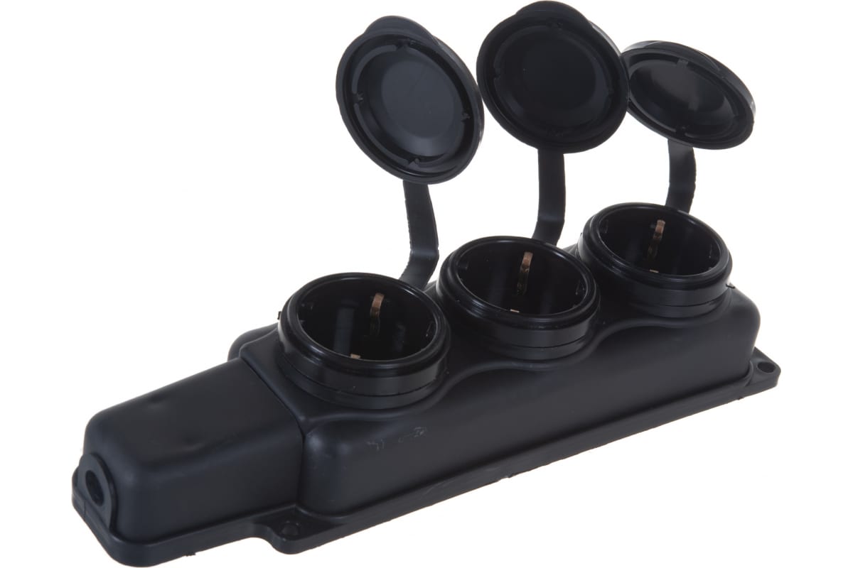 Розетка 3-местная штепсельная влагозащищенная каучук IP44 черная SVET РП 16-334