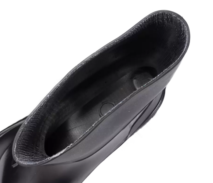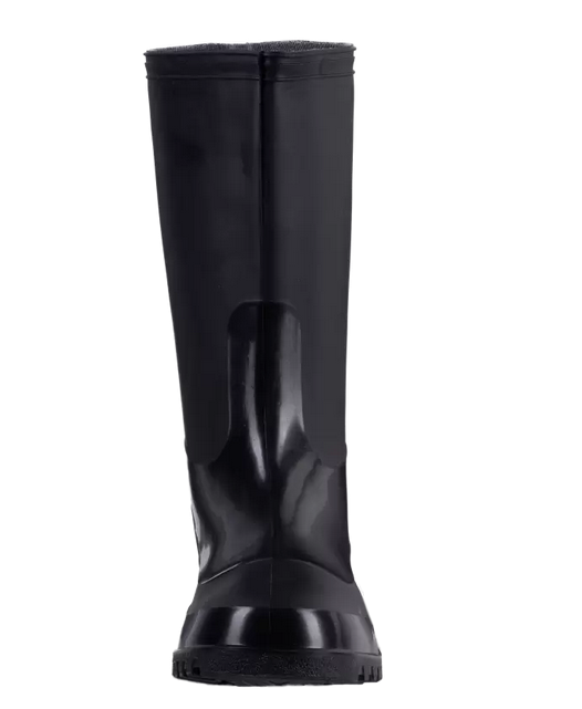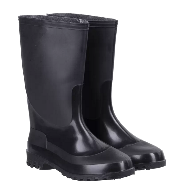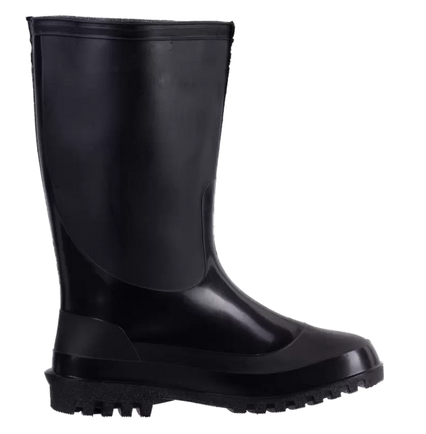 Сапоги резиновые мужские ПВХ черные р-р 44 - обувь выполнена с высоким голенищем (32 см), имеет износостойкую подошву с каблуком и глубоким рифленым рисунком подошвы, который препятствует скольжению. Сапоги обеспечивают защиту от механических воздействий, воды, воздействий растворов неорганических кислот, нефтепродуктов, щелочей.