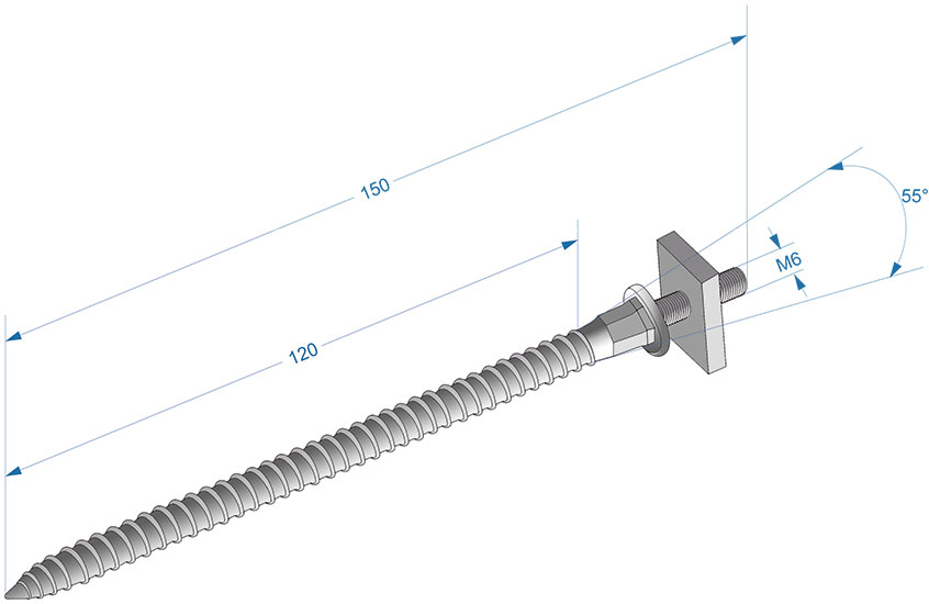 Шпилька специальная с гайкой Docke предназначена для крепления универсального хомута к стене здания.