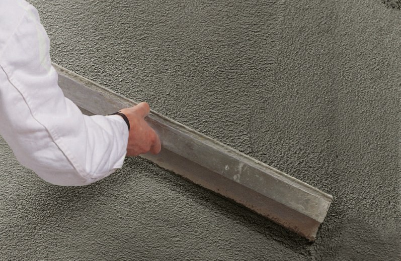 - После подготовки основания вручную или машинным способом нанесите необходимое количество раствора на поверхность