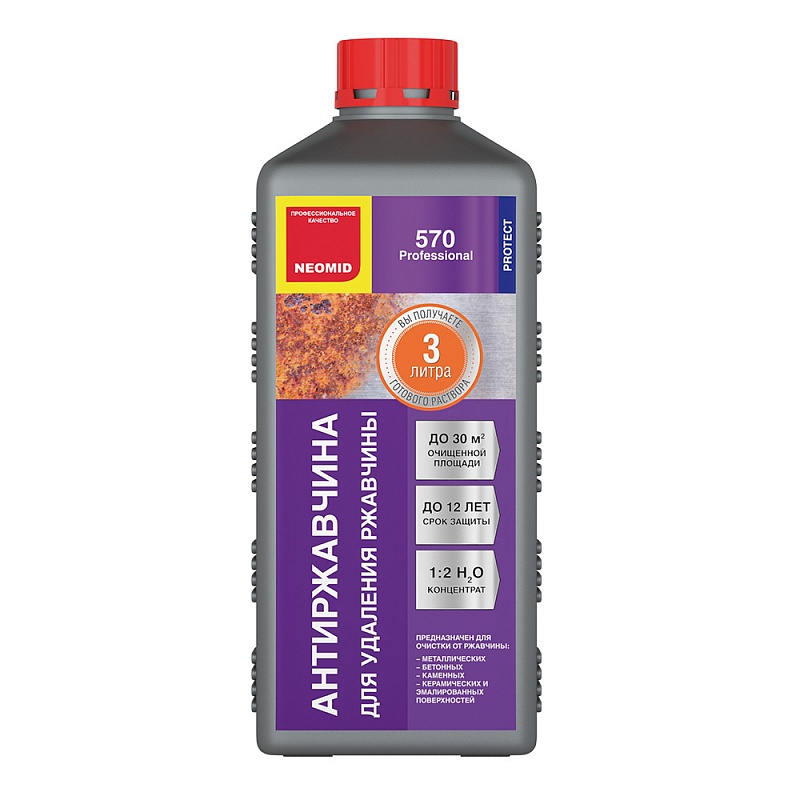 Антиржавчина NEOMID 570 – Концентрированный состав для удаления ржавчины с металлических, керамических, бетонных, эмалированных и каменных поверхностей. Применяется для внутренних и наружных работ.