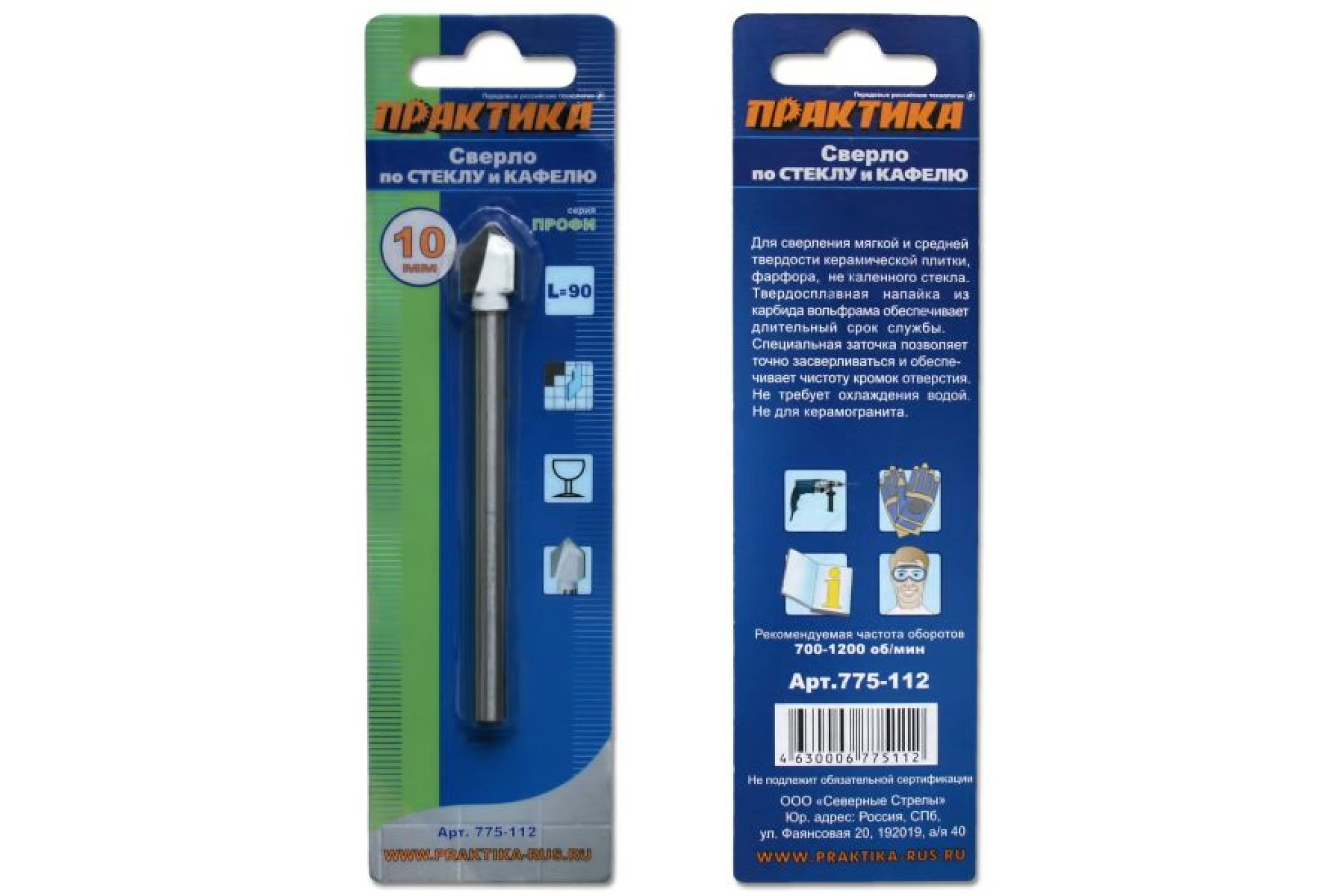 Сверло по стеклу и кафелю Практика 10х90 мм