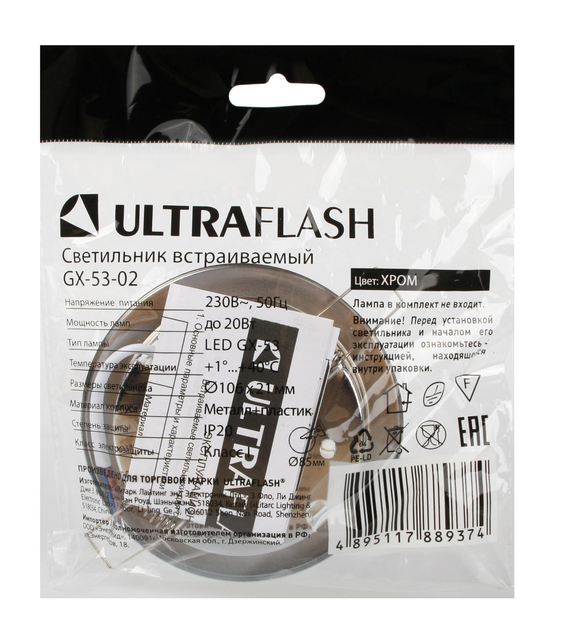 Точечный светильник Ultraflash GX-53-01 подходит для любых типов потолков, кроме монолитных – натяжных, подвесных реечных. Возможен монтаж светильника в стены или предметы мебели для создания интерьерных акцентов.