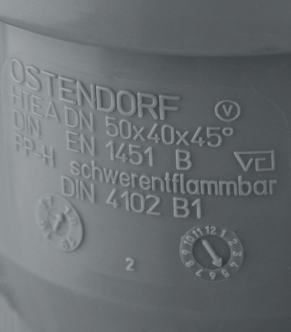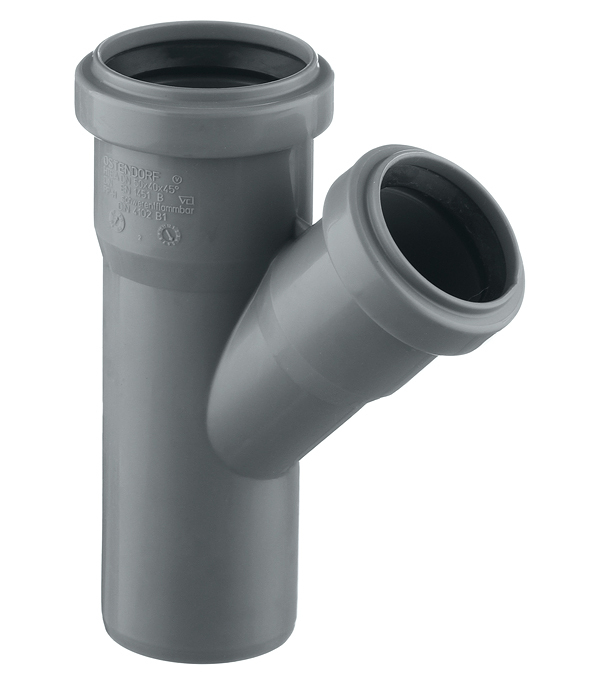 Специализированный переходной фитинг для создания разветвлений между трубами ?50 мм и ?40 мм в канализационных системах Ostendorf. Обеспечивает плавное изменение диаметра и направления потока под углом 45° с сохранением герметичности соединения.
