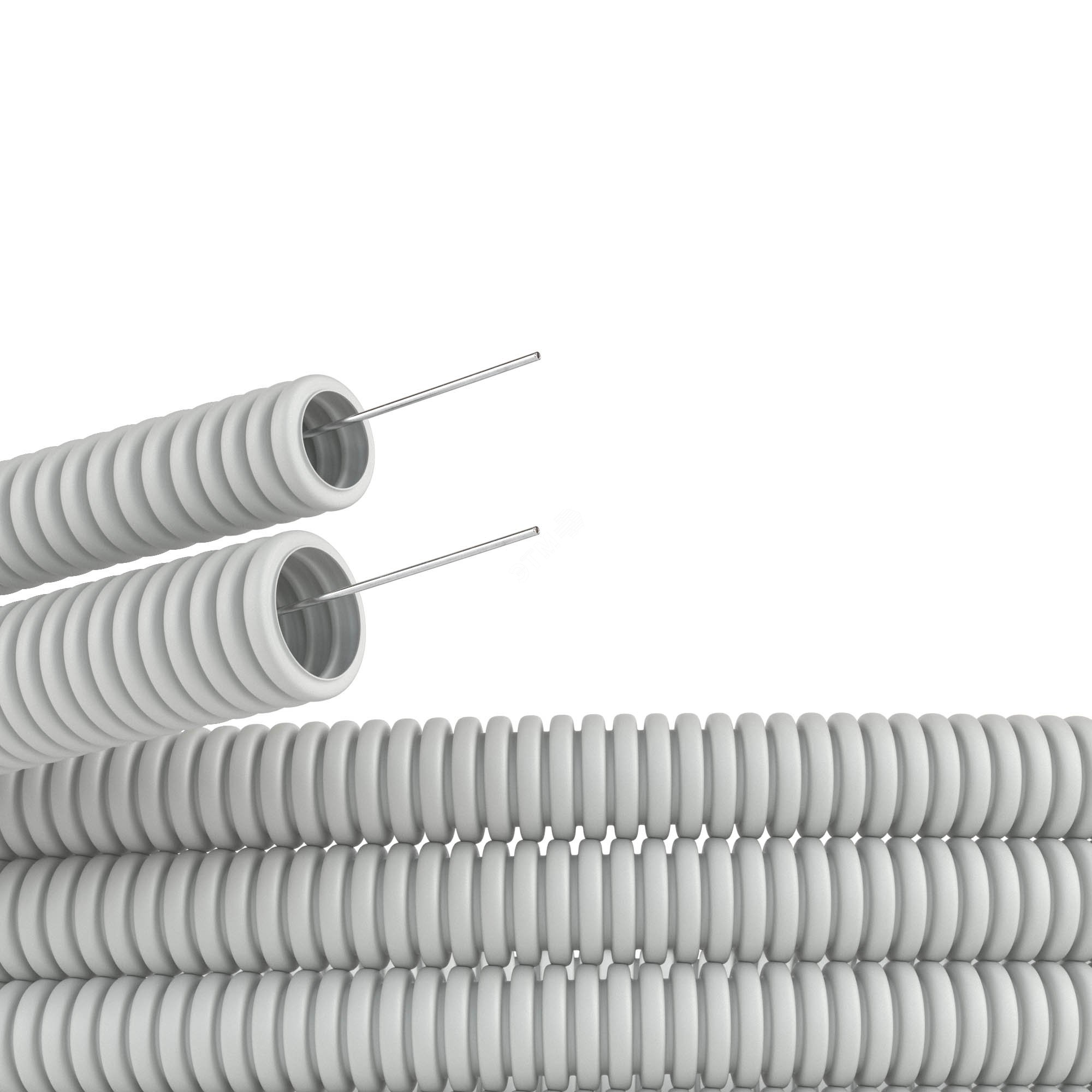 Труба гофрированная ПВХ серая с зондом 50мм 15 м/уп предназначена для защиты проводов и кабелей при прокладке сложных систем и трасс. Промрукав защищает провода от механических повреждений, агрессивного воздействия окружающей среды и обеспечвает пожарную безопасность электропроводки.