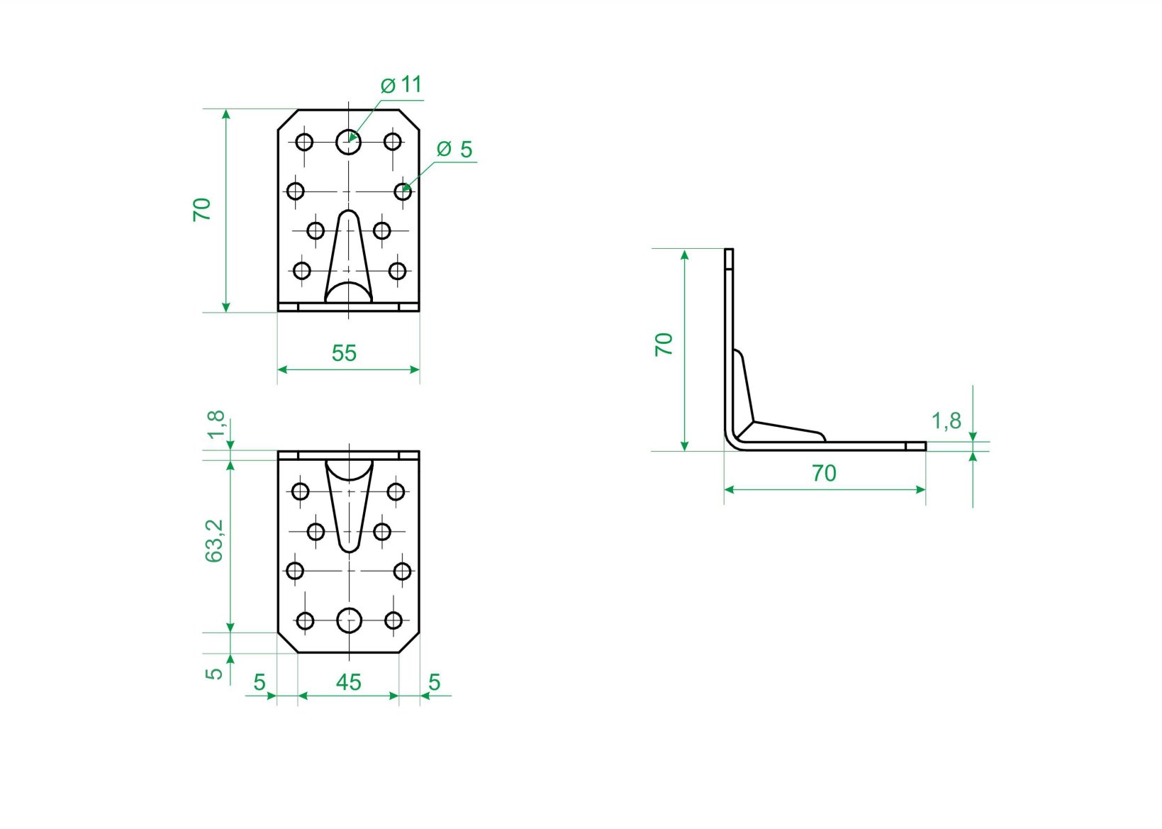 Угол крепежный усиленный оцинкованный (KUU-70х55) 70 х 70 х 55 х 1,8 мм
