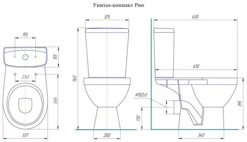Классический дизайн позволяет унитазу Рио вписываться в любой интерьер и дополнять его. Благодаря универсальному выпуску унитаз подключается к любой системе канализации. Бачок оборудован двухрежимной арматурой в целях экономии (можно спускать 3 или 6 литров).