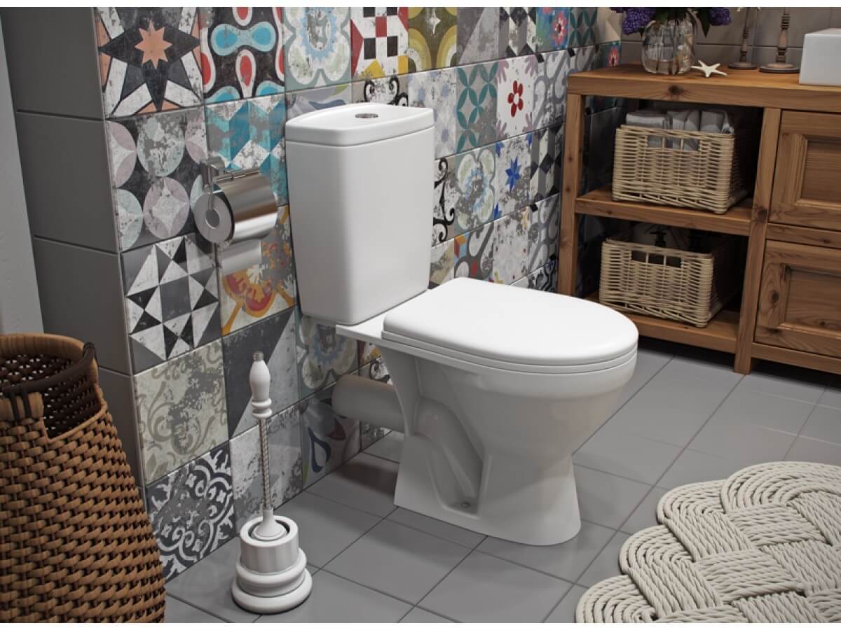 Унитаз-компакт Rosa Rio горизонтальный (универсальный) выпуск нижняя подводка с сиденьем