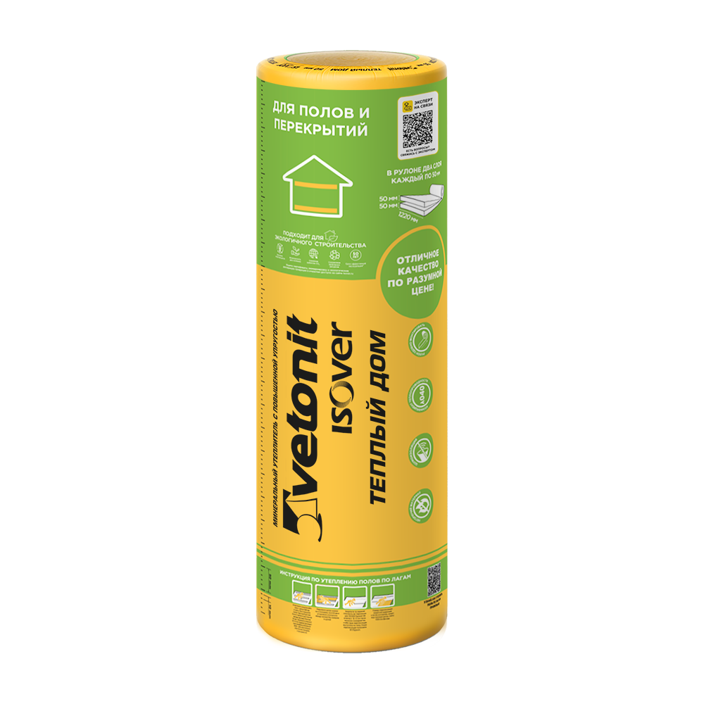 Ветонит (Изовер) Теплый дом — Утеплитель и шумоизоляция из минеральной ваты для полов и перекрытий. Оптимальное качество по разумной цене. Удобен для утепления больших горизонтальных поверхностей.