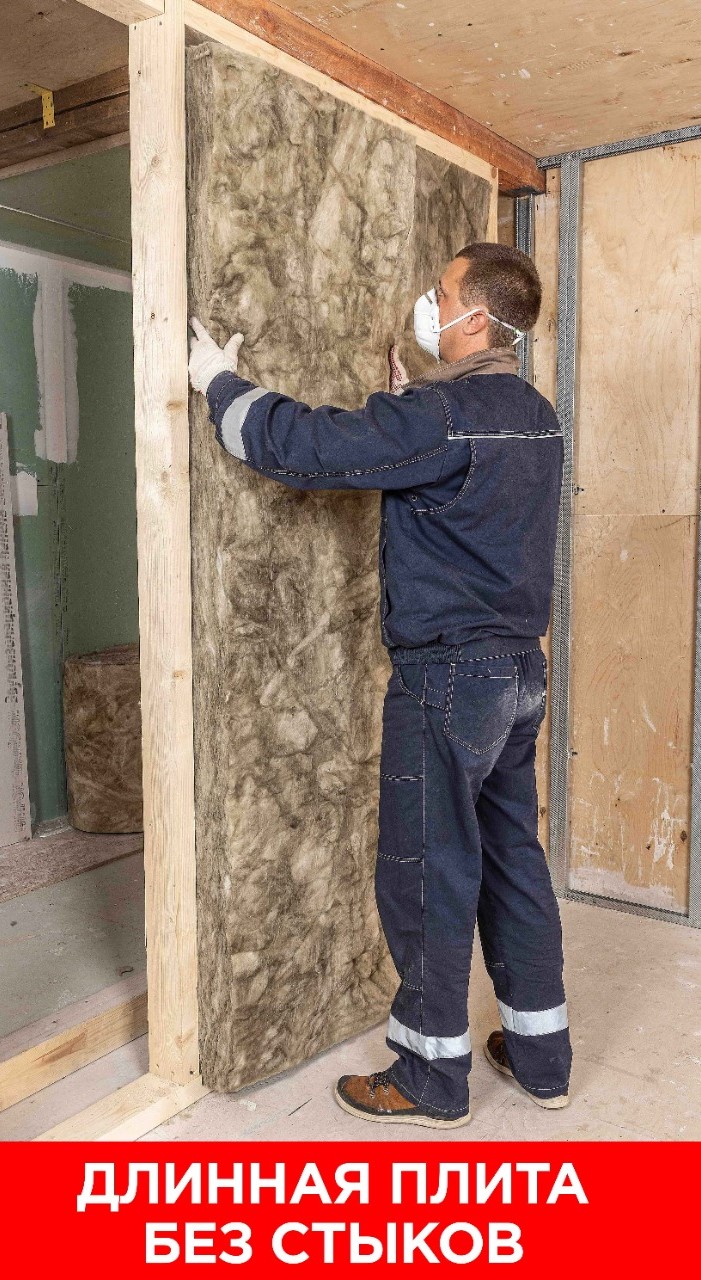 • На монтаже: Уже нарезан на 2 удобных рулона шириной 610 мм под стандартный шаг каркаса (600 мм). При нестандартном шаге материал легко режется на плиты нужного размера.