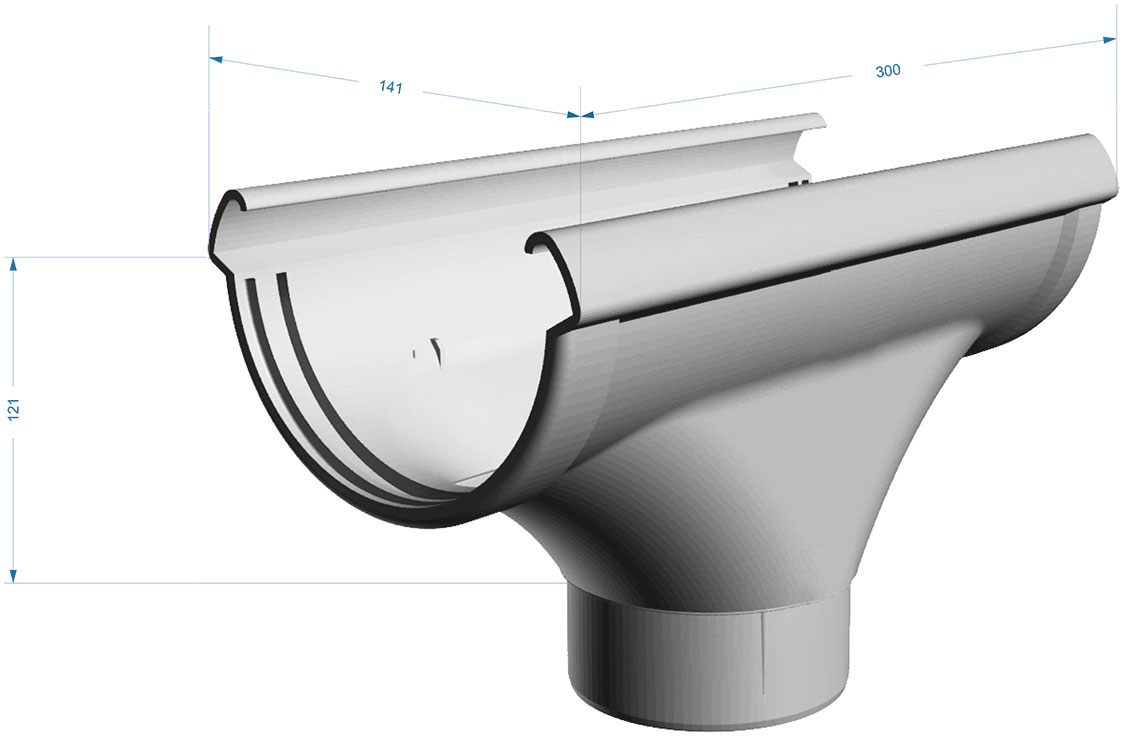 Воронка желоба предназначена для соединения водосточного желоба и трубы для отвода воды из водосборной в водосливную систему.
