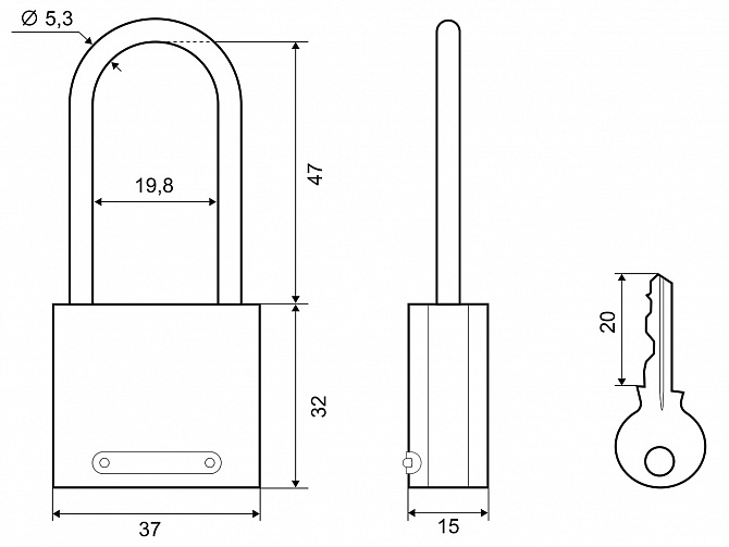 | Высота проема дужки, мм: | 47 |