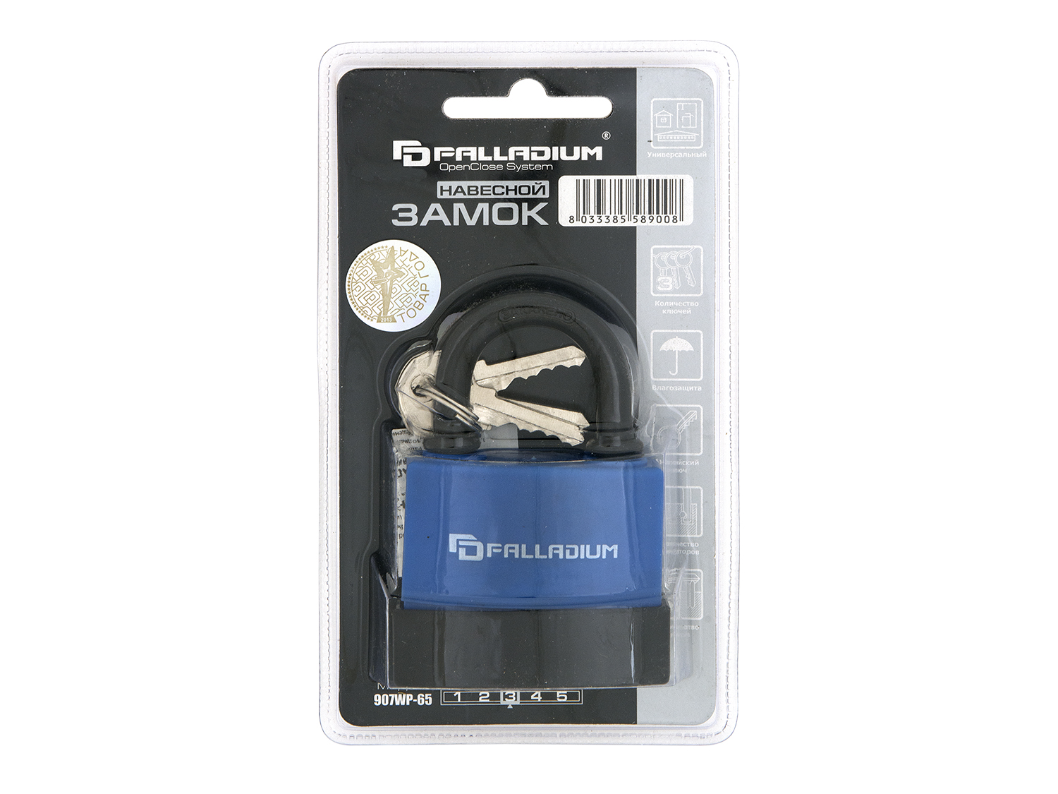 Навесной замок Палладиум 907WP-65 - влагостойкая модель большого амбарного замка для гаражей, складов и хозяйственных построек. 100% герметичность, устойчивость к снегу, дождю и грязи, легко вешается на свободные или асимметрично расположенные проушины.