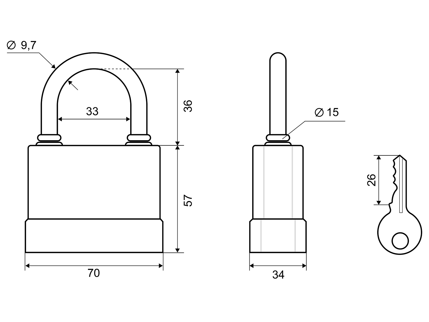 | Высота проема дужки, мм: | 34,6 |