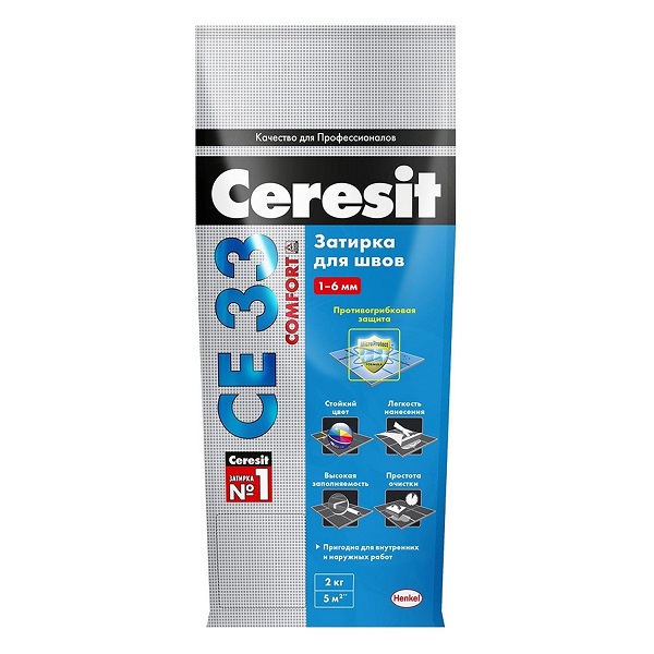 Затирка Ceresit CE 33 предназначается для заполнения швов каменных и керамических облицовок, которые устроены на недеформирующихся основаниях на полах и стенах зданий. Такими основаниями могут являться цементные стяжки, штукатурки, бетон. Затирку СЕ 33 можно использовать как при внутренних, так и при наружных работах. Рекомендованная величина шва, для обработки – до 6 мм.